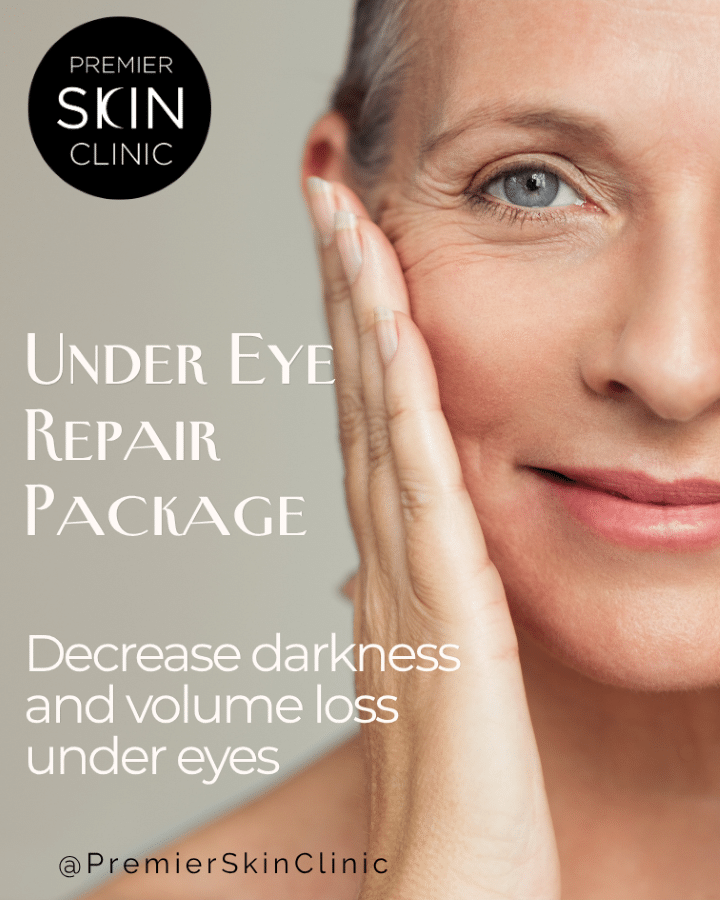 Under Eye Repair Package: Series of 3 PRP (protein rich plasma)/PRF (protein rich fibrin) treatments to decrease darkness and volume loss under eyes. Improves skin texture and stimulates collagen production with your own growth factors and stem cells.